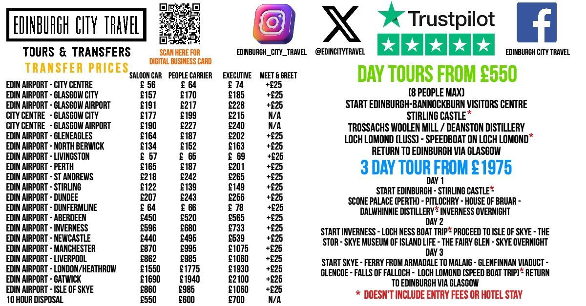 Pick up or drop off at Edinburgh Airport for up to 7 people.
